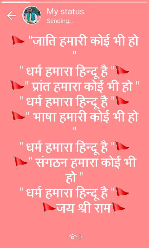 рдХिрд╕ी рдХी рднी рд╕ेрд╡ा рдИрд╢्рд╡рд░ рд╕ेрд╡ा рд╣ै ! рд╣рд░ рд╣рд░ рдорд╣ाрджेрд╡ рдЬрдп рд╢्рд░ी рд░ाрдо ! рд╡ंрджे рдоाрддрд░рдо рдЬрдп рднाрд░рдд рдЬрдп рд╣िрди्рдж рдЬрдп рдЧौ рдоाрддा рдм्рд░рд╣्рдоांрдб рдХे рдХेंрдж्рд░ " рдмिрди्рджु "рд╣ैं рд╣рдо , рдХोрдИ рдФрд░ рдирд╣ीं " рд╣िंрджू " рд╣ै рд╣рдо !