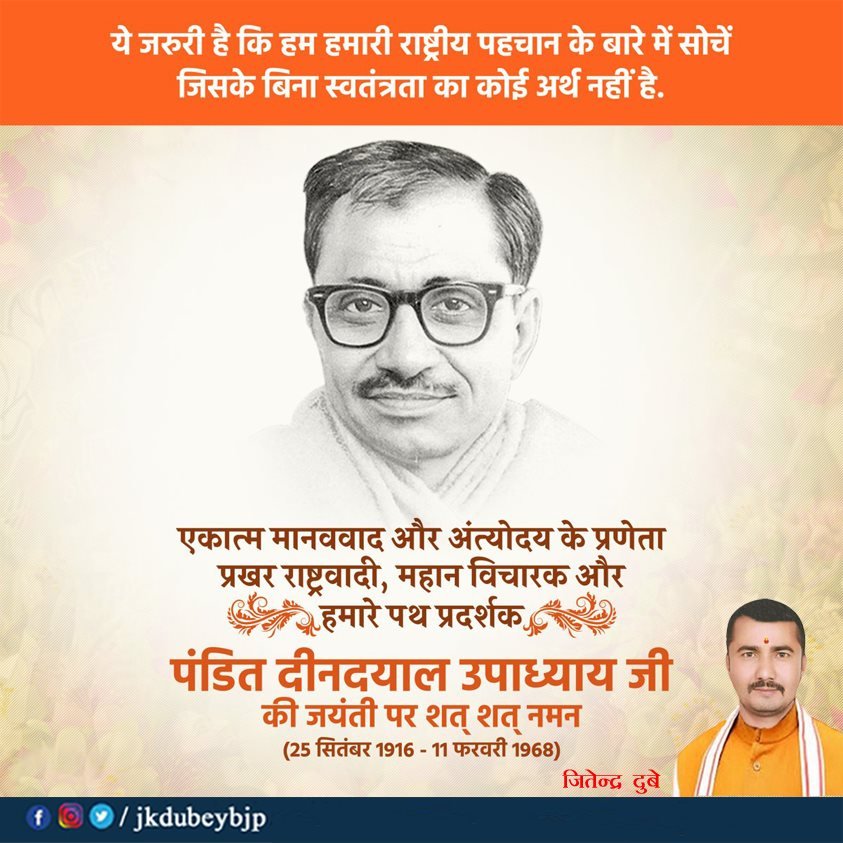рдПрдХाрдд्рдо рдоाрдирд╡рд╡ाрдж рдФрд░ рдЕंрдд्рдпोрджрдп рдХे рдк्рд░рдгेрддा рдк्рд░рдЦрд░ рд░ाрд╖्рдЯ्рд░рд╡ाрджी, рдорд╣ाрди рд╡िрдЪाрд░рдХ рдФрд░ рд╣рдоाрд░े рдкрде рдк्рд░рджрд░्рд╢рдХ рдкंрдбिрдд рджीрдирджрдпाрд▓ рдЙрдкाрдз्рдпाрдп рдЬी рдХी рдЬрдпंрддी рдкрд░ рд╢рдд्-рд╢рдд् рдирдорди #DeendayalUpadhyay,