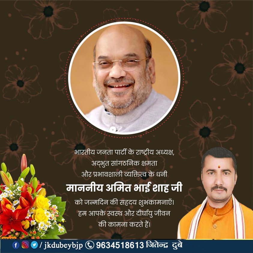 рдПрдХ рдХुрд╢рд▓ рд░рдгрдиीрддिрдХाрд░, #рднाрд░рддीрдп_рдЬрдирддा_рдкाрд░्рдЯी рдХे рд░ाрд╖्рдЯ्рд░ीрдп рдЕрдз्рдпрдХ्рд╖ рд╢्рд░ी @AmitShah рдЬी рдХो рдЬрди्рдорджिрди рдХी рдЕрдиंрдд рд╢ुрднрдХाрдордиाрдПँ।#jkdubeybjp