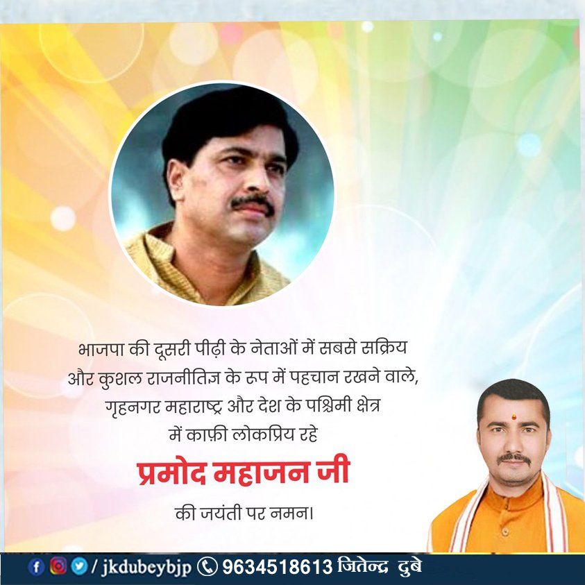 рднाрд░рддीрдп рдЬрдирддा рдкाрд░्рдЯी рдХे рд╢ीрд░्рд╖ рдиेрддाрдУं рдоें рд╕े рдПрдХ рд░рд╣े, рдХрдж्рджाрд╡рд░ рдиेрддा рдк्рд░рдоोрдж рд╡्рдпंрдХрдЯेрд╢ рдорд╣ाрдЬрди рдЬी рдХी рдЬрдпंрддी рдкрд░ рдирдорди।