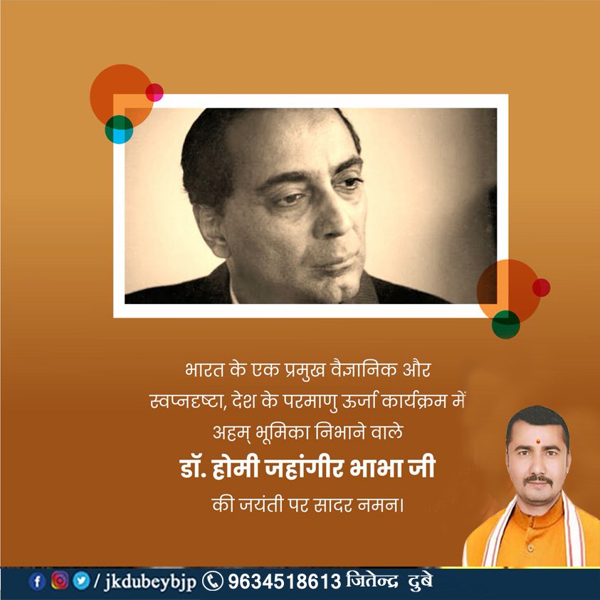 рднाрд░рдд рдХे рдПрдХ рдк्рд░рдоुрдЦ рд╡ैрдЬ्рдЮाрдиिрдХ рдФрд░ рд╕्рд╡рдк्рдирджृрд╖्рдЯा, рджेрд╢ рдХे рдкрд░рдоाрдгु рдКрд░्рдЬा рдХाрд░्рдпрдХ्рд░рдо рдоें рдЕрд╣рдо् рднूрдоिрдХा рдиिрднाрдиे рд╡ाрд▓े рдбॉ.рд╣ोрдоी #рдЬрд╣ांрдЧीрд░_рднाрднा рдЬी рдХी рдЬрдпंрддी рдкрд░ рд╕ाрджрд░ рдирдорди।#jkdubeybjp #HomiJehangirBhabha @isro